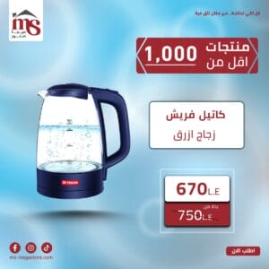 غلاية مياه كهربائية زجاج جماكي 2200 وات، 2 لتر، اسود، JMK 9507