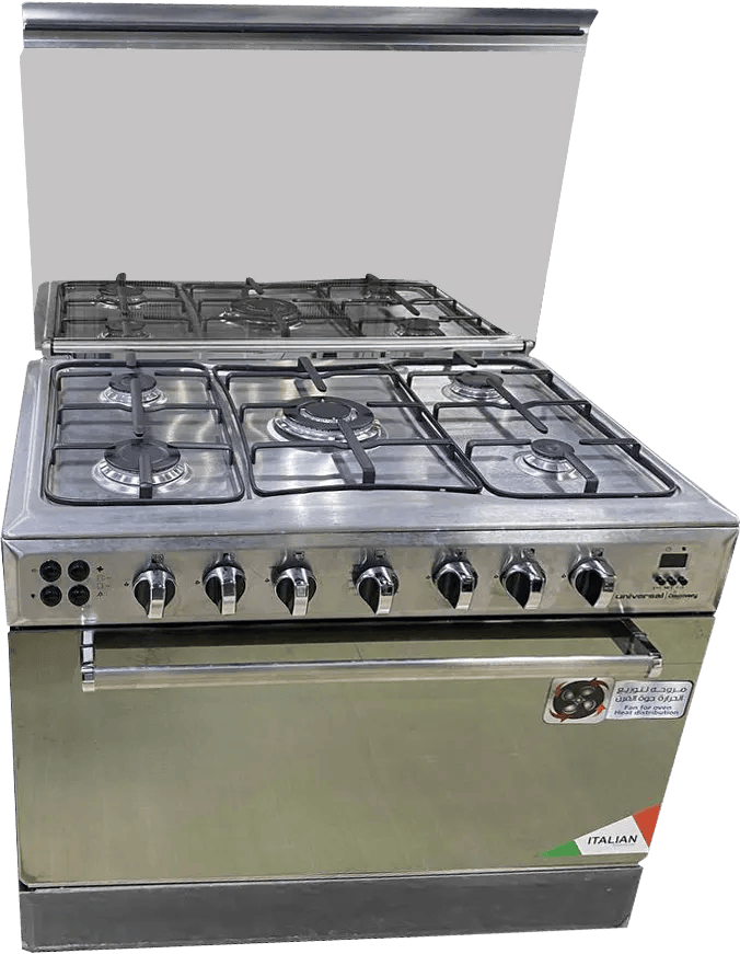 بوتاجاز يونيفرسال ديسكفري، 60×90 سم، 5 شعلة، شاشة ديجيتال، مروحة، سلفر، 9605