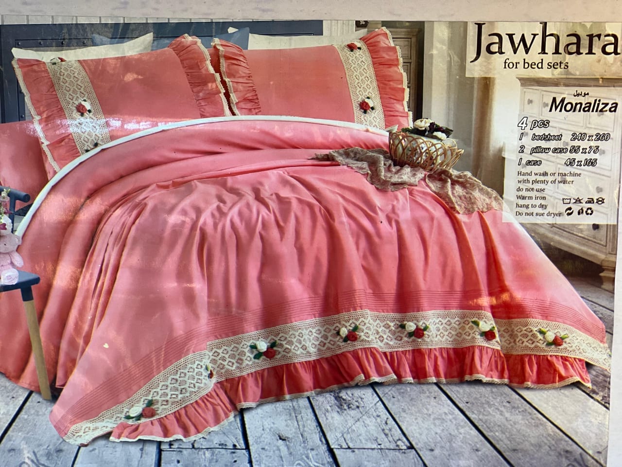 طقم سرير الجوهره م موناليزا ساده كبير 4 قطع