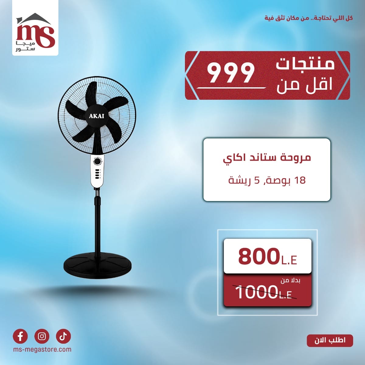 مروحه ستاند اكاى 18 بوصه _5 ريشه